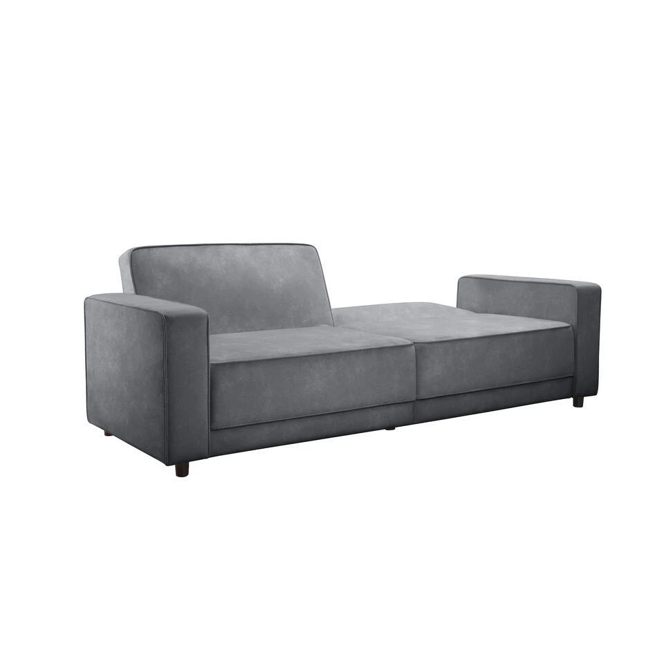 De hoogwaardige golfbasis zorgt ervoor dat de slaapbank in antracietgrijs fluweel goed is opgevuld en permanent elastisch blijft. De bank kan handmatig worden aangepast naar je gewenste positie in slechts een paar stappen. Elke zitplaats kan tot 125 kilogram dragen. De FSC®-certificering garandeert de kwaliteit van het product. De zwarte plastic voeten zijn corrosiebestendig en bijzonder duurzaam.