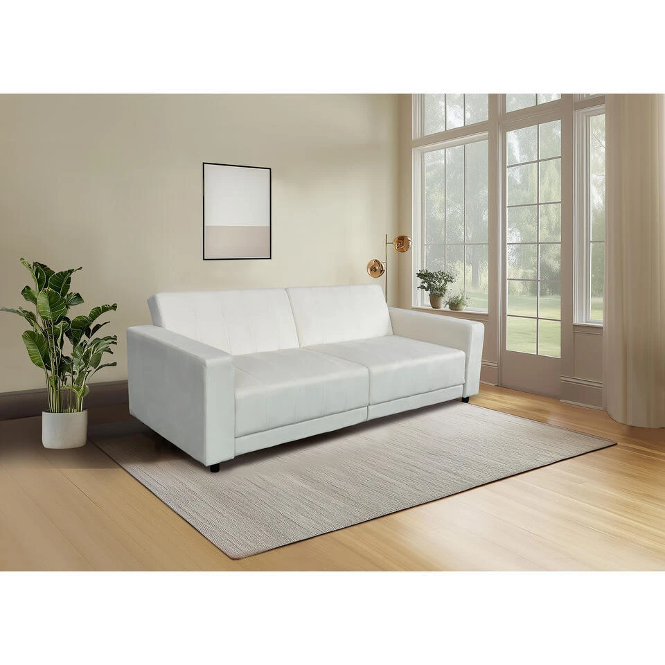 De elegante slaapbank met drie zitplaatsen, bekleed met luxueuze zachte fluweelstof, is perfect voor elke woonkamer, logeerkamer of thuiskantoor. Dankzij de zichtbare stiksels op de zitting en rugleuning voegt het een vleugje verfijning toe aan je interieur. Deze handmatig verstelbare slaapbank verandert moeiteloos in een extra slaapplaats, ideaal voor het ontvangen van logés. Je kunt eenvoudig je favoriete positie instellen in slechts een paar stappen. De matras, met een afmeting van ongeveer 108 × 190 cm, bevat steunpoten die slim in de rugleuning zijn verborgen voor extra stabiliteit. Elke zitplaats kan een maximale belasting van 135 kilogram dragen. In gemonteerde toestand zijn de afmetingen van de slaapbank ongeveer 225 × 91 × 81 cm. Het product is FSC®-gecertificeerd.