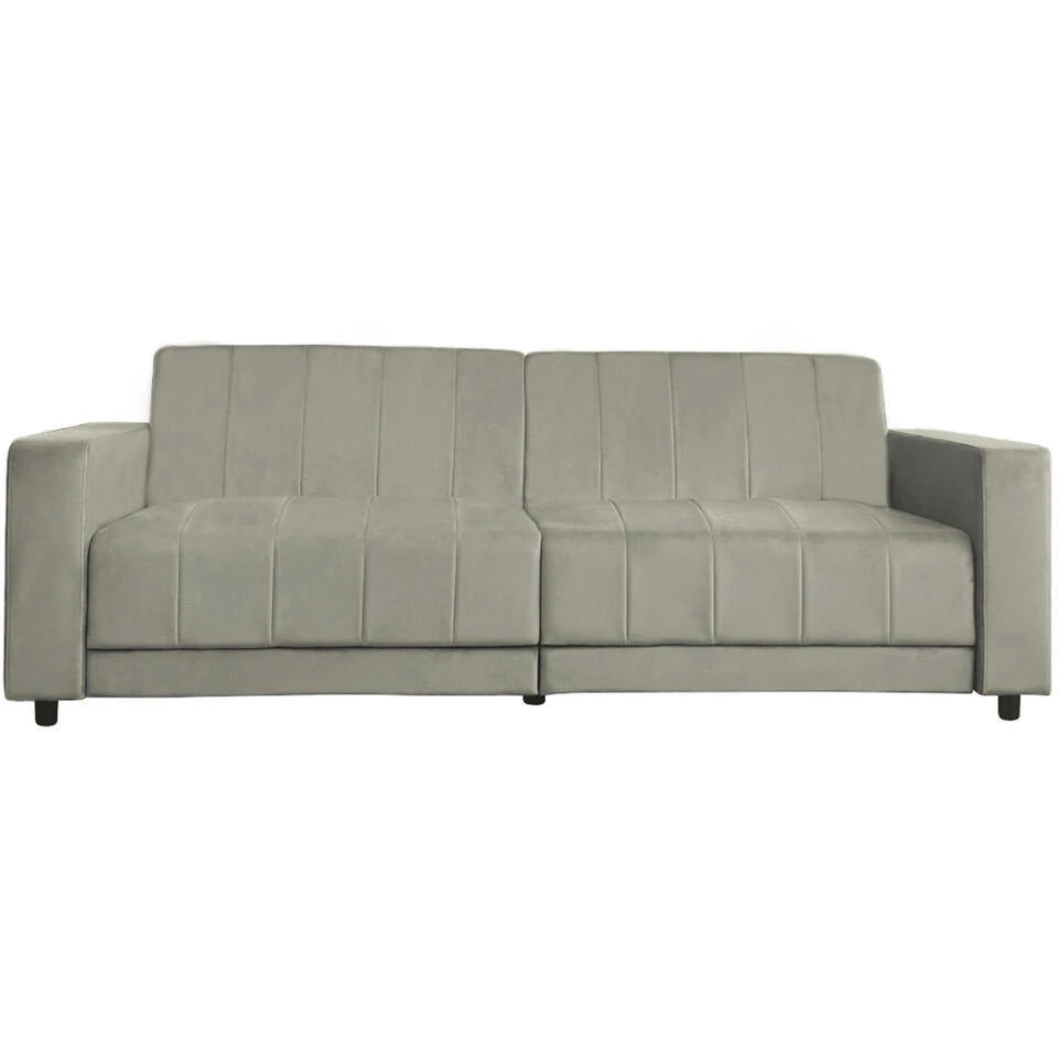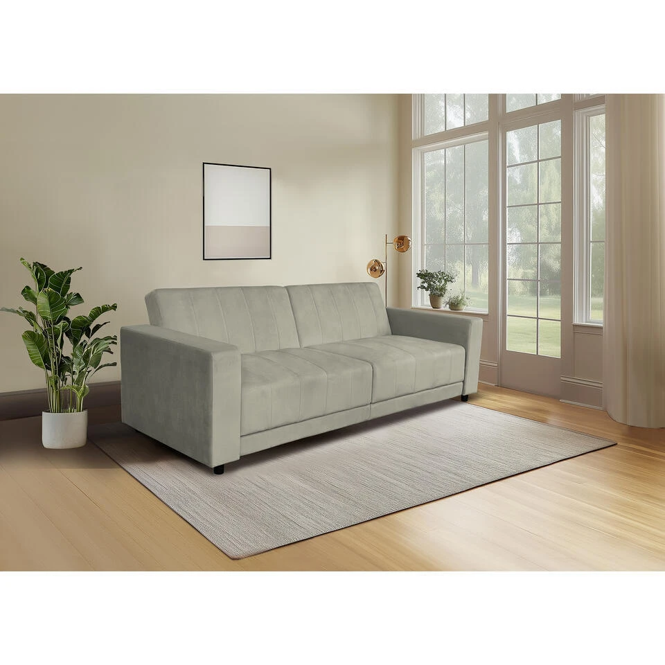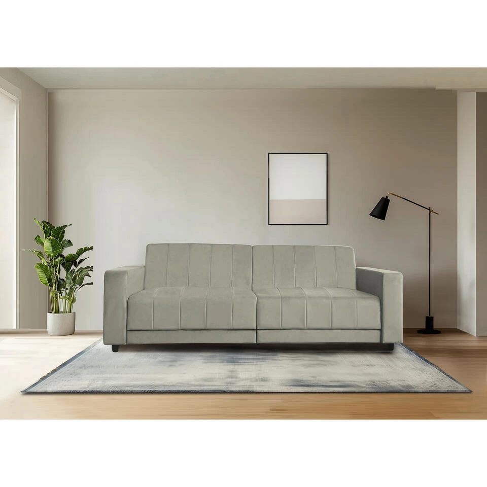 De elegante slaapbank met drie zitplaatsen, bekleed met luxueuze zachte fluweelstof, is perfect voor elke woonkamer, logeerkamer of thuiskantoor. Dankzij de zichtbare stiksels op de zitting en rugleuning voegt het een vleugje verfijning toe aan je interieur. Deze handmatig verstelbare slaapbank verandert moeiteloos in een extra slaapplaats, ideaal voor het ontvangen van logés. Je kunt eenvoudig je favoriete positie instellen in slechts een paar stappen. De matras, met een afmeting van ongeveer 108 × 190 cm, bevat steunpoten die slim in de rugleuning zijn verborgen voor extra stabiliteit. Elke zitplaats kan een maximale belasting van 135 kilogram dragen. In gemonteerde toestand zijn de afmetingen van de slaapbank ongeveer 225 × 91 × 81 cm. Het product is FSC®-gecertificeerd.