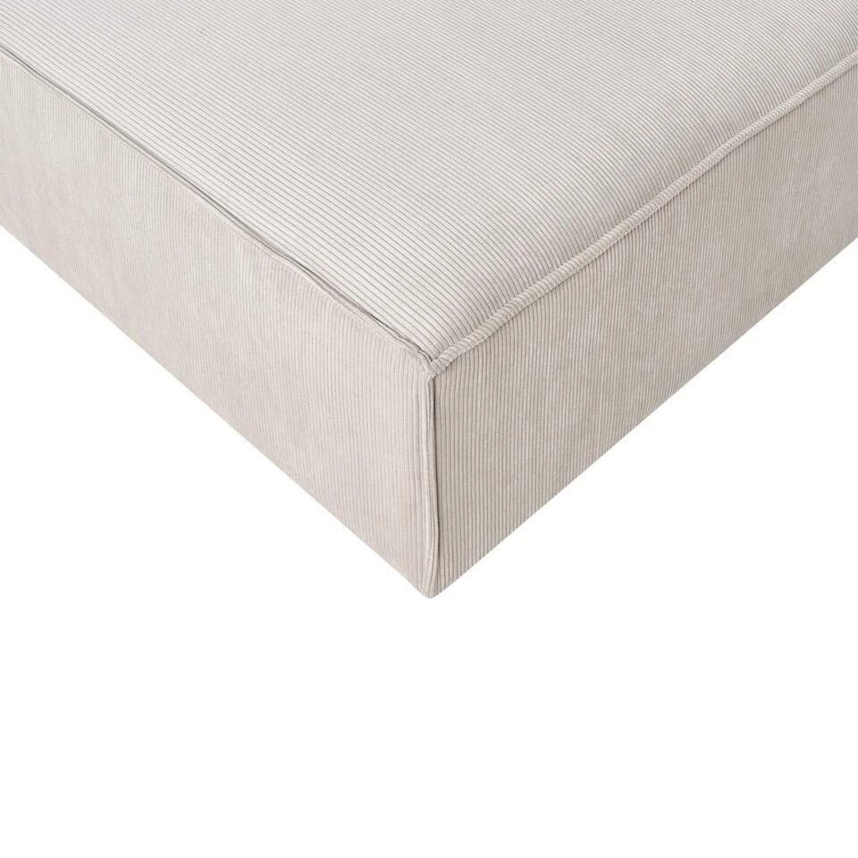 Extra informatie: Houd er rekening mee dat corduroy-stof er een beetje anders uit kan zien wanneer het wordt blootgesteld aan verschillende soorten licht – het heeft de neiging meer te glinsteren bij daglicht en ziet er meer afgezwakt uit bij kunstlicht binnenshuis.