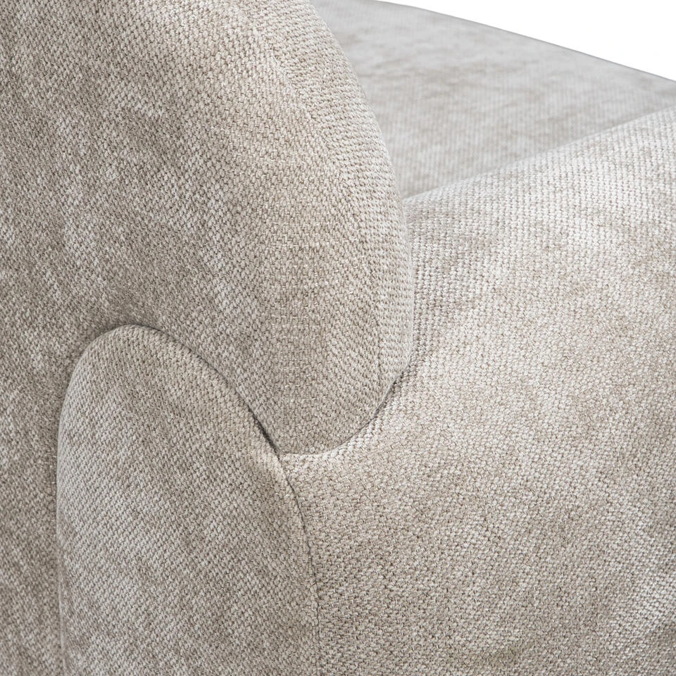 Op zoek naar comfort en stijl? Maak kennis met de Bibi bank: een prachtige en tijdloze uitstraling. Met zijn trendy beigekleurige stof en handige armleuningen straalt deze bank warmte uit. Of je nu een film kijkt of een boek leest, de Bibi biedt ultiem comfort en een vleugje luxe in je interieur.