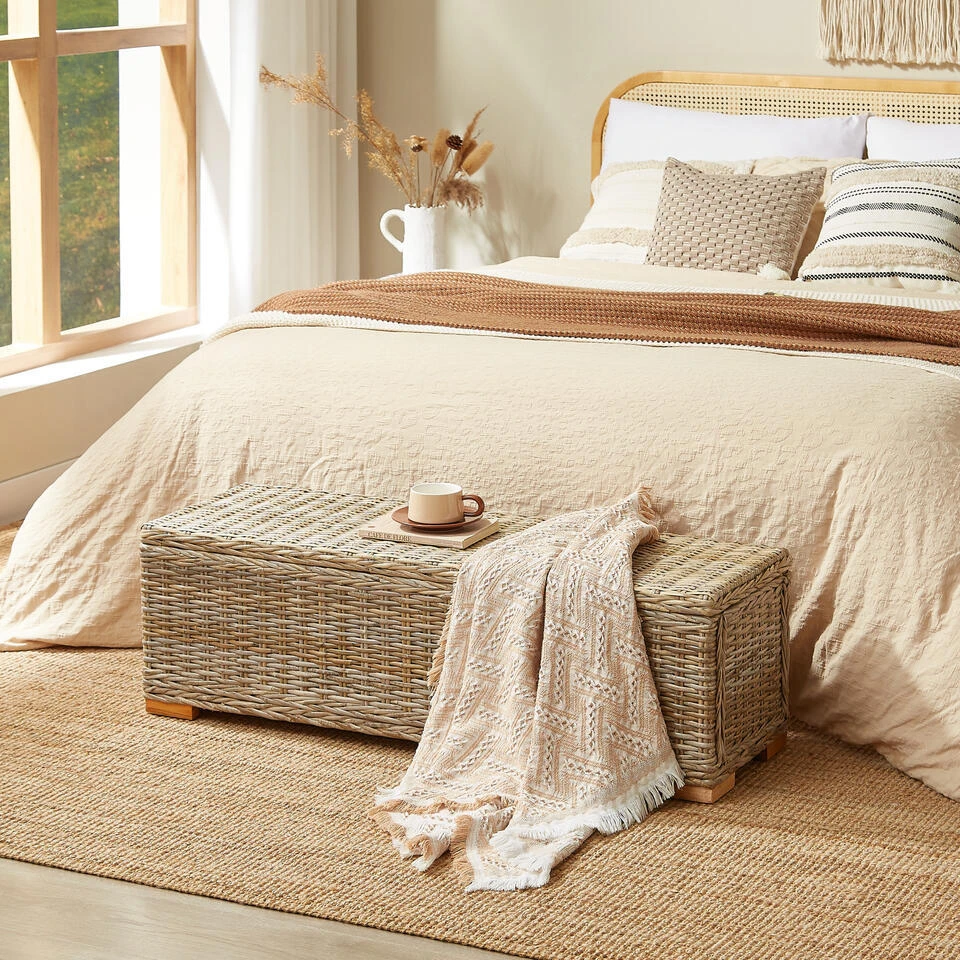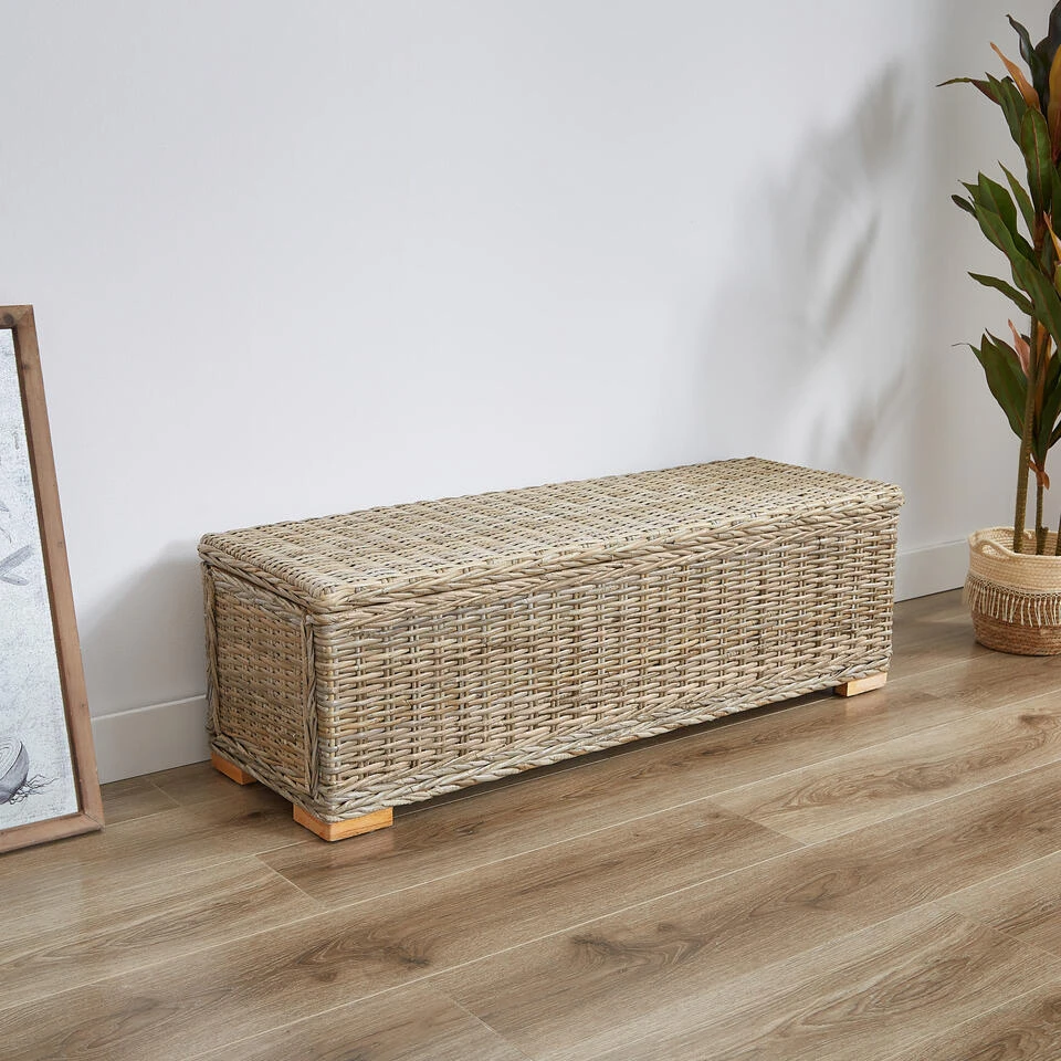 De houten en rotan entreekamerbank CUZCO is een meubelstuk in Scandinavische stijl dat een bohemien tintje aan uw interieur zal geven. Met een draagvermogen tot 120 kg, combineert het comfort en duurzaamheid. Gemaakt van rotan en FSC-gecertificeerd grenen, biedt deze bank ook een handige opbergruimte. Met zijn warme bruine kleur past de CUZCO-bank perfect in uw inrichting, of het nu in een entree, slaapkamer of woonkamer is. Met zowel praktisch nut als esthetiek is dit meubelstuk ideaal om een natuurlijke en etnische sfeer in uw interieur te creëren. Profiteer van de charme en kwaliteit van deze entreekamerbank om uw gasten elegant te ontvangen en tegelijkertijd een extra opbergruimte te hebben voor uw dagelijkse spullen. Dit product bevat hout, een natuurlijk materiaal waarvan de kleur licht kan variëren afhankelijk van de lichtinval.