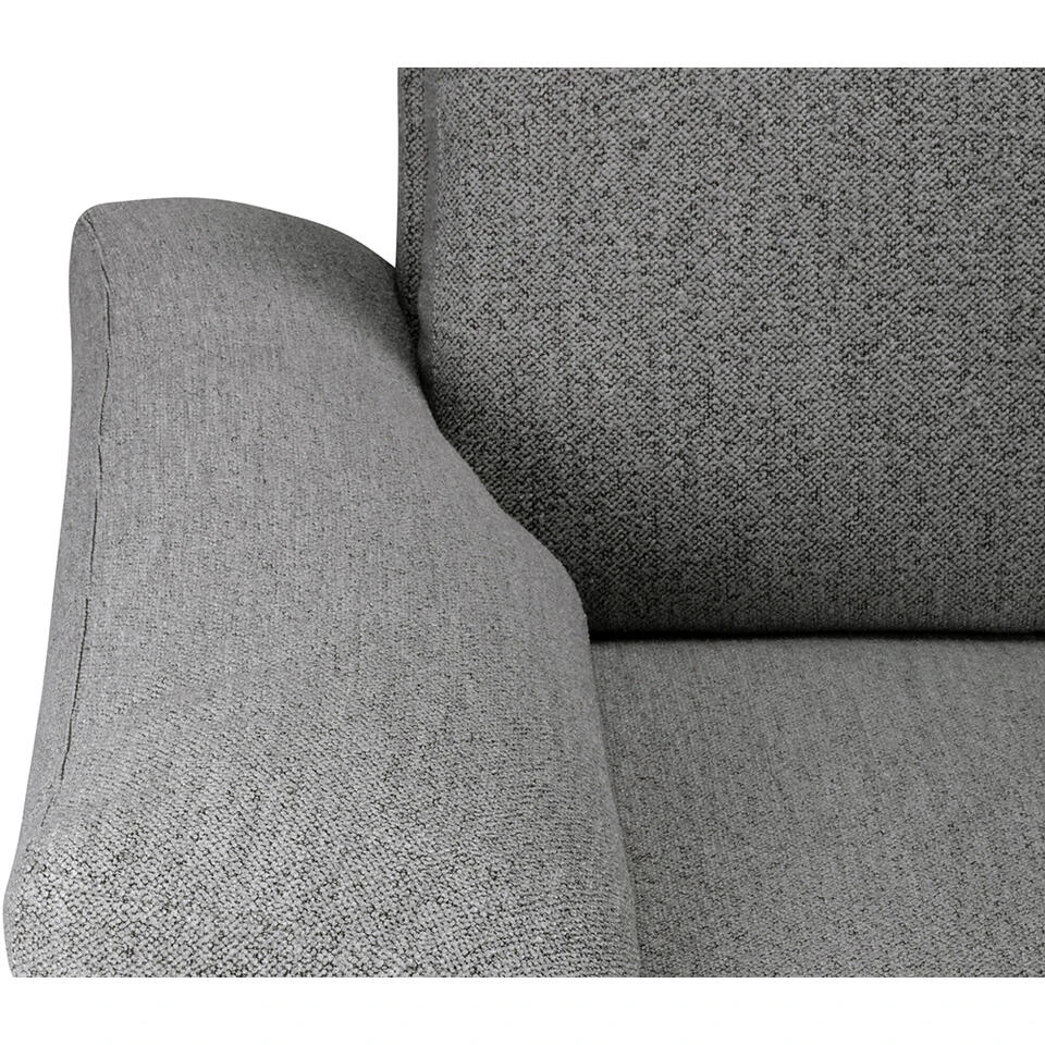 Bank Tom heeft een sfeervolle Scandinavische uitstraling uitgevoerd in een grijskleurige stof genaamd Monza. De bank heeft slanke poten en is voorzien van een chaise longue aan de linkerkant. Bank Tom biedt ruimte genoeg om met meerdere mensen op te zitten.Â