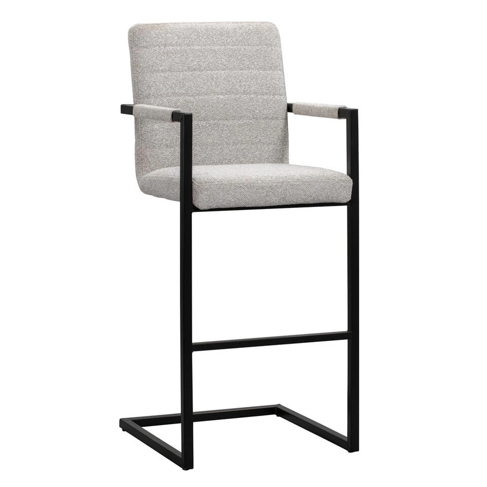Barkruk Lizzy heeft een trendy uiterlijk. De kruk is bekleed met een bouclé stof in een lichtgrijze bijna beigeachtige kleur. Met deze barkruk aan de bar in jouw keuken, kunnen je vrienden altijd aanschuiven en hoef je nooit meer alleen te koken. De barkruk is ook voorzien van armleuningen, zo kan je ook comfortabel dineren.