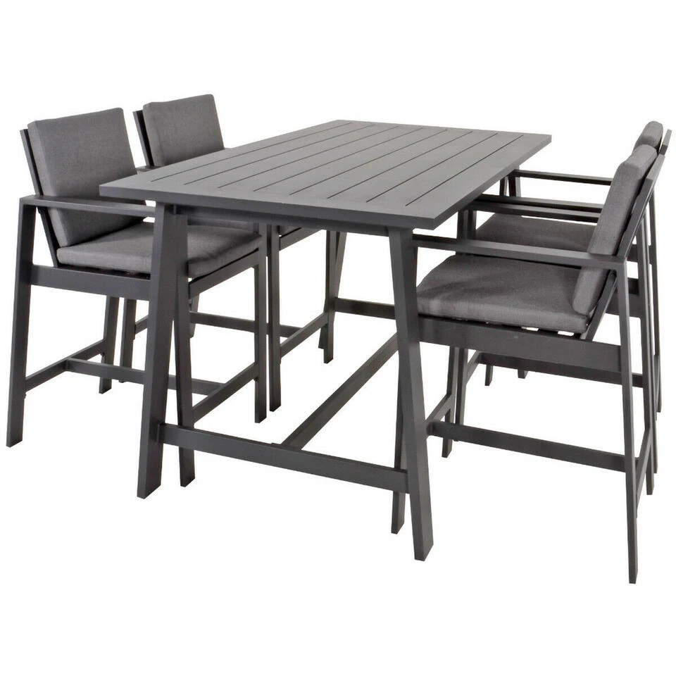 Maak uw terras of serre helemaal af met deze moderne Malibu barstoel uit de collectie van het merk Les! Deze barstoel is in zijn geheel gemaakt van stevig donkergrijs aluminium en valt op door zijn strakke vormgeving. Hij is uitgerust met armleuningen, een voetensteun en wordt geleverd inclusief een comfortabel zit- en rugkussen (245gr/m² olefin). Combineer deze barstoel ook met de bijpassende Malibu bartafel en maak de set compleet! Deze barstoel is te bestellen per twee stuks. Afmeting: B63xD72xH111 cm.