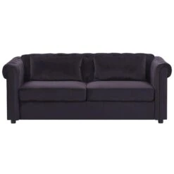 Klassieke slaapbank in traditionele Engelse stijl in elegant zwart. Deze driezitsbank kenmerkt zich door een slank silhouet met brede armleuningen en de typische Chesterfield-stijl. De lage rugleuning en de zachte, dik beklede zitkussens zorgen voor uitmuntend zitcomfort. De bank is bekleed met heerlijk fluweel in een luxe zwarte tint en is gedecoreerd met klassieke diamantknopen. Met behulp van een gemakkelijk uitklapmechanisme kan snel een eenpersoonsbed worden uitgevouwen. Deze Engelse klassieker is onderhoudsvriendelijk en past in elk interieur, van modern tot traditioneel.