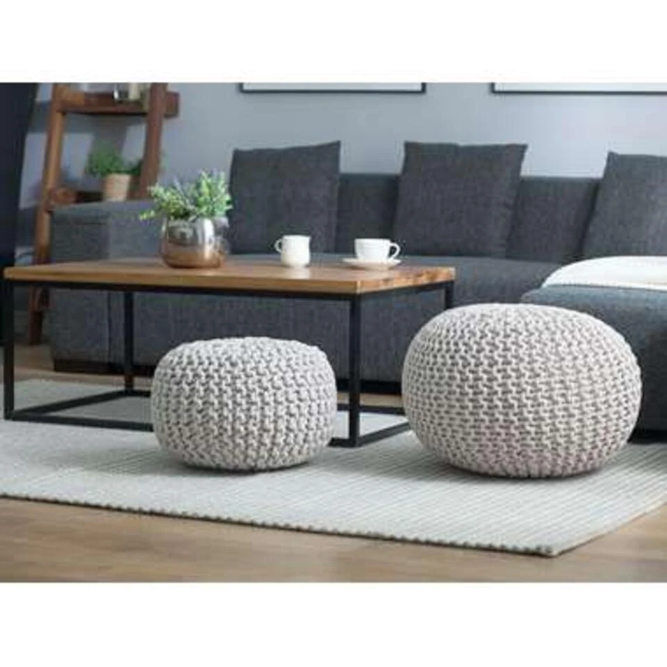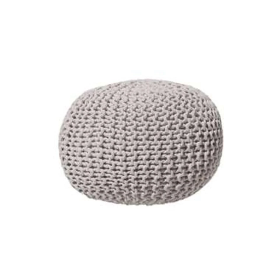 Lichtgrijze ronde poef. Als je op zoek bent naar een vrolijk accent om je interieur op te vrolijken, dan is deze schattige gebreide ronde poef perfect. Met dik weefsel in een warme kleur en stevige, hoogwaardige vulling, kan het dienen als voetenbank, als basis voor een tafeltje of gewoon als decoratief stuk – de mogelijkheden zijn eindeloos. Wees creatief met het mixen van kleuren en maten om een ideale compositie voor je woonruimte te maken en geniet van de charmante moderne sfeer.