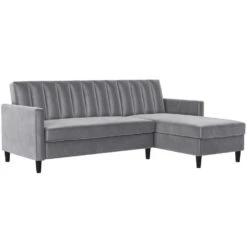 Deze slaapbank heeft een moderne stijl. Het is gemaakt van gefabriceerd hout en een fluwelen hoes. De vulling is gevuld met schuim voor optimaal comfort. De hoekbank heeft een uitbreidbaar slaapoppervlak en kan als logeerbed worden gebruikt. Het is handmatig verstelbaar. De chaise longue kan worden geopend voor opslag.
