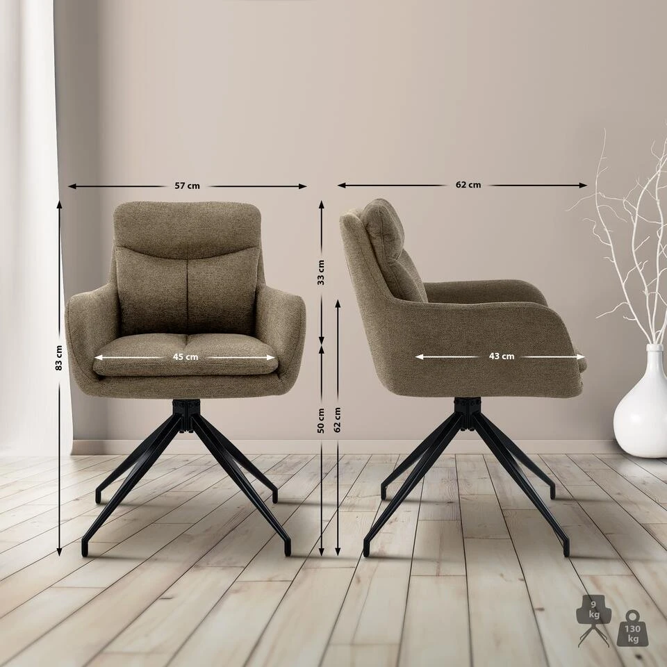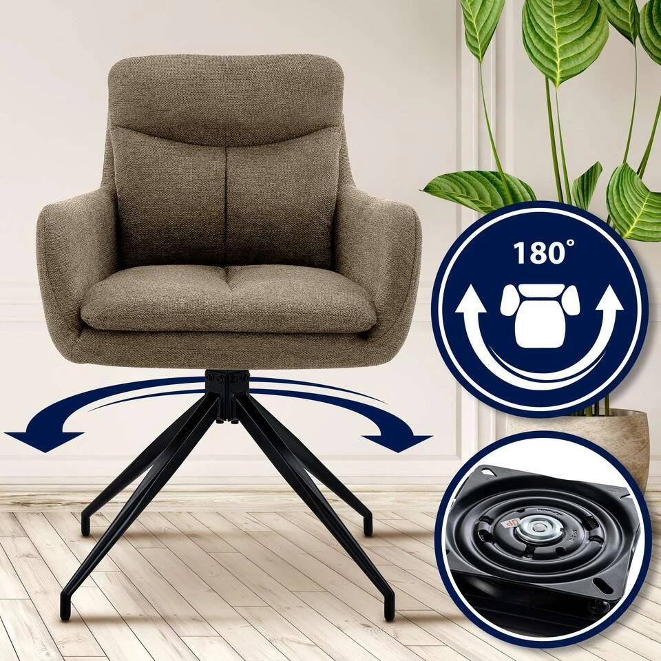 De draaibare eetkamerstoel Somers stof combineert stijlvol design met comfort. Hij is ideaal voor de keuken, eetkamer en woonkamer. De hoogwaardige, slijtvaste stoffen bekleding voelt prettig aan en blijft zelfs bij dagelijks gebruik behaaglijk. De zachte, dik gestoffeerde zitting zorgt voor comfort tijdens lange maaltijden en nodigt uit om te blijven hangen.