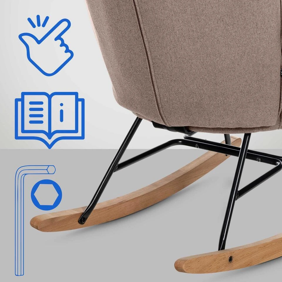 De schommelstoel Sanka is een comfortabele, solide en tegelijkertijd stijlvolle stoel voor dagelijks gebruik. Dit moderne meubelstuk past perfect in bijna elke huiskamersfeer. De comfortabel gestoffeerde zitschaal met stoffen bekleding belooft een aangenaam zitcomfort. De knopen op de bekleding van de rugleuning zetten modieuze accenten. De elegant gevormde beukenhouten lopers zijn geschroefd op een hoogwaardig zwart gelakt metalen frame, dat de stoel zijn hoge stabiliteit geeft. Een allround mooi meubelstuk waar u lang van zult genieten.