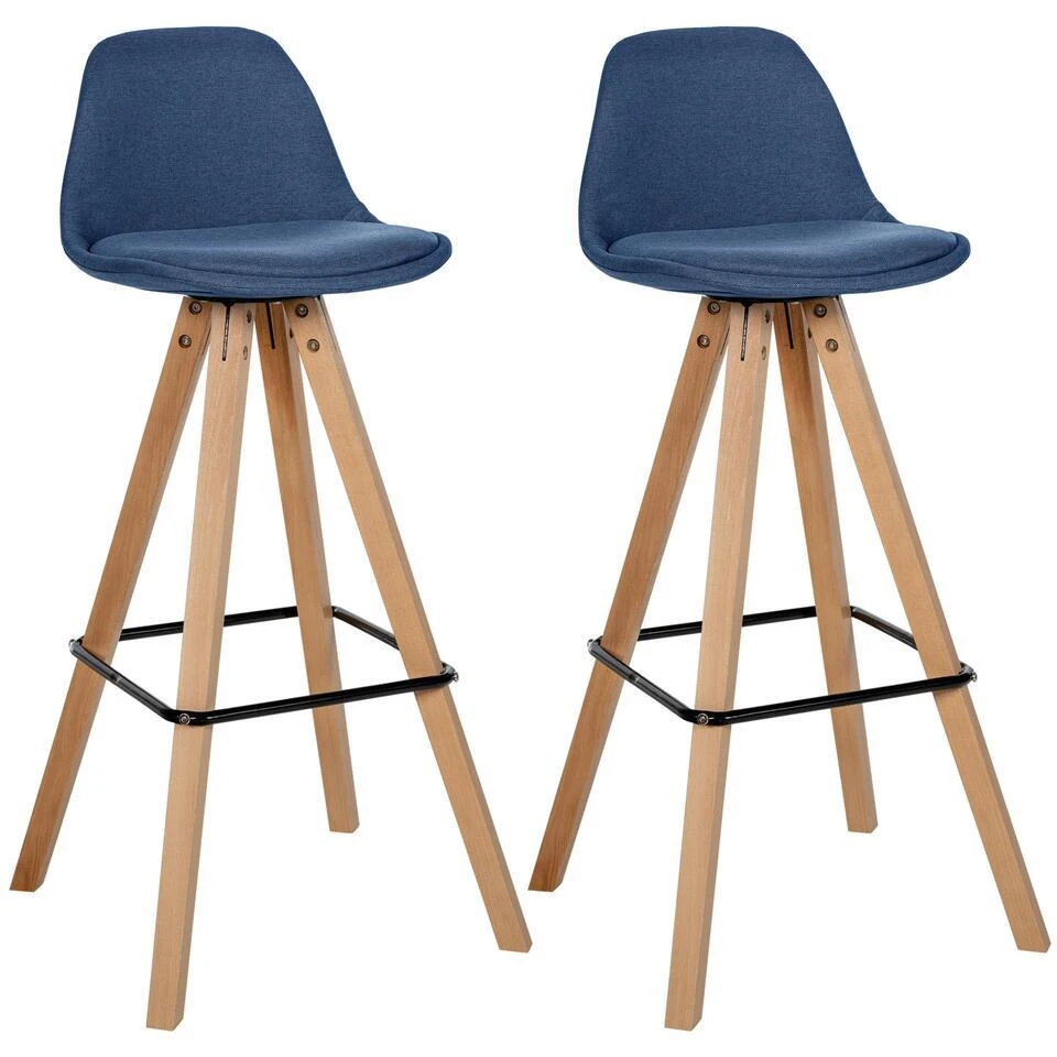 De barkrukken kenmerken zich door hun modern design en stevige houtconstructie, die per kruk een draagvermogen van tot wel 120 kg garanderen. De gestoffeerde zittingen van hoogwaardige stof zorgen voor blijvend comfort, terwijl de rugleuning en geïntegreerde voetsteun extra ondersteuning en gemak bieden.