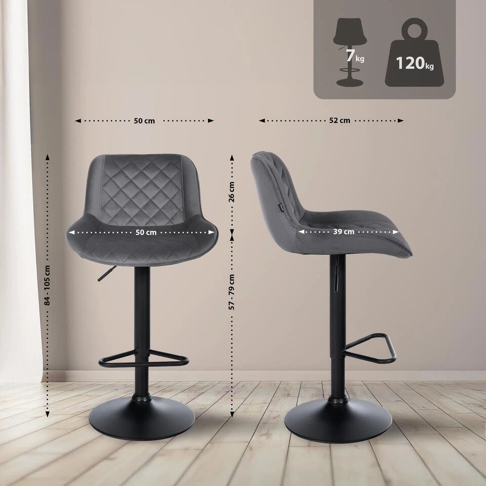 Dankzij de in hoogte verstelbare functie van 57 cm tot 79 cm kunt u de kruk individueel aanpassen voor comfort in elke situatie. De geïntegreerde voetensteun en gewatteerde zitting maximaliseren de zitervaring en nodigen uit om te blijven zitten. De draaibare functie van de barkrukken bevordert bewegingsvrijheid en interactie.