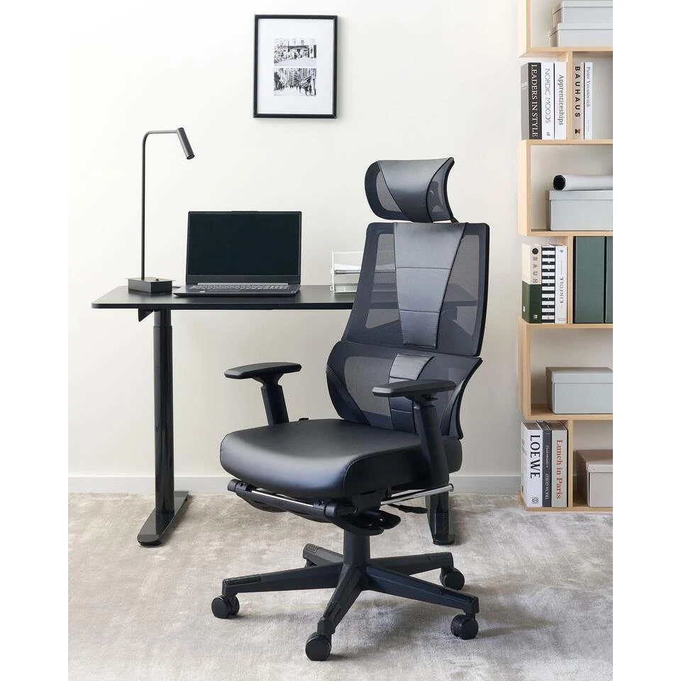 Belangrijkste eigenschappen: 360° draaibaar, De veiligheidsremfunctie vergrendelt wielen voor veiligheid, ontgrendelt voor mobiliteit, Kantelmechanisme voor een optimale zithouding, Pneumatisch verstelbare zithoogte, In hoogte verstelbare armleuningen voor een persoonlijke positionering, Verstelbare rugleuning en voetensteun, Ademende mesh-stof zorgt voor een betere luchtcirculatie, Traditioneel design met een moderne twist, Stabiele en duurzame constructie