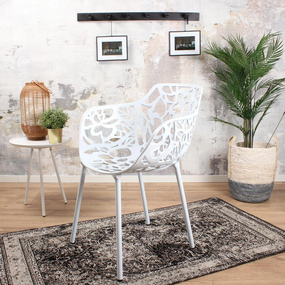 De Magnolia chair is een heuse design stoel en geschikt voor binnen en buiten. De stoel heeft een sierlijke structuur, welke doet denken aan de vormen van de natuur. Deze stevige stoel is gemaakt van aluminium, waardoor het gewicht beperkt blijft. Verder is de stoel stapelbaar en leverbaar in vijf verschillende kleuren: avocado, zwart, wit, lichtgrijs, kopergoud.