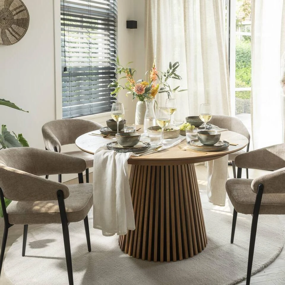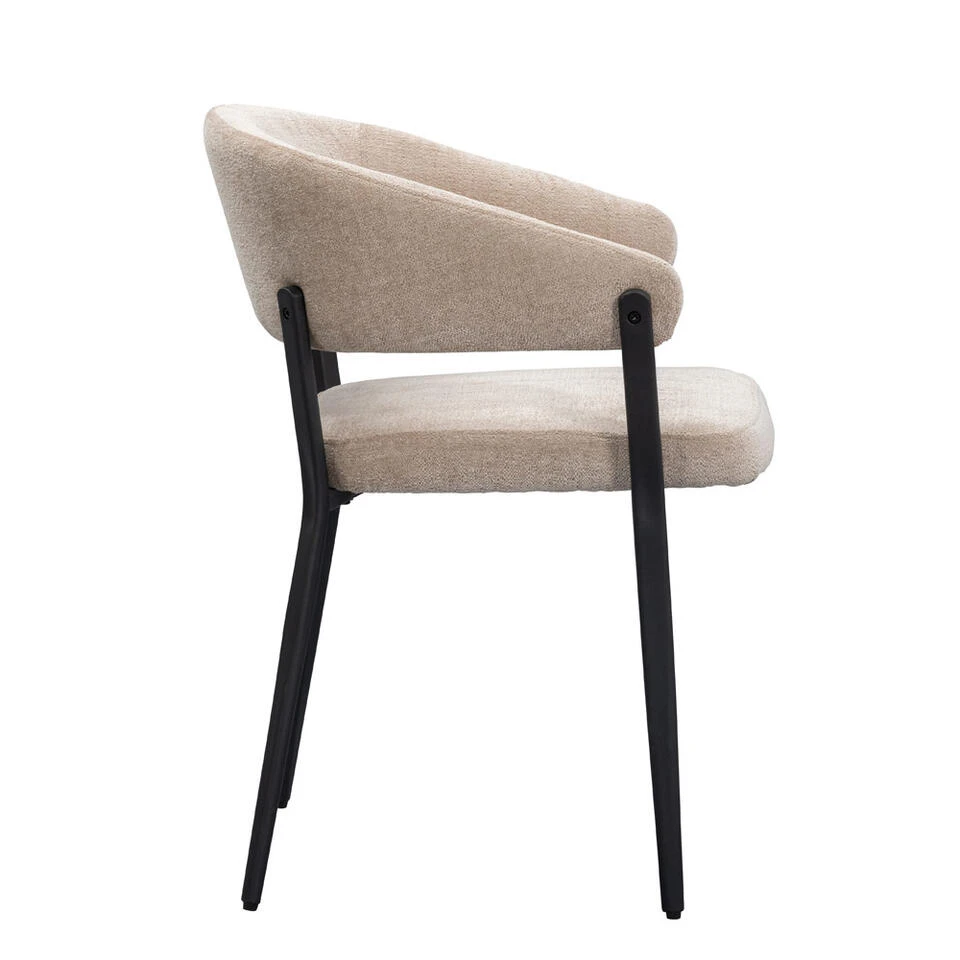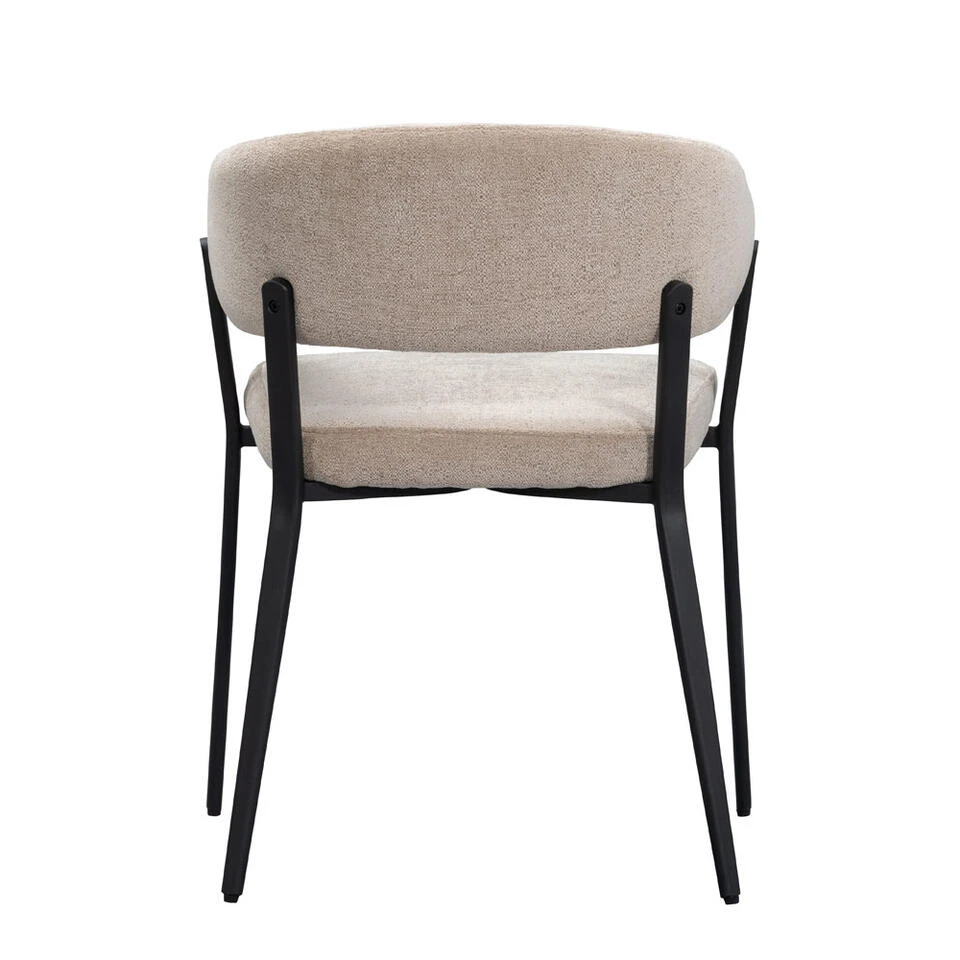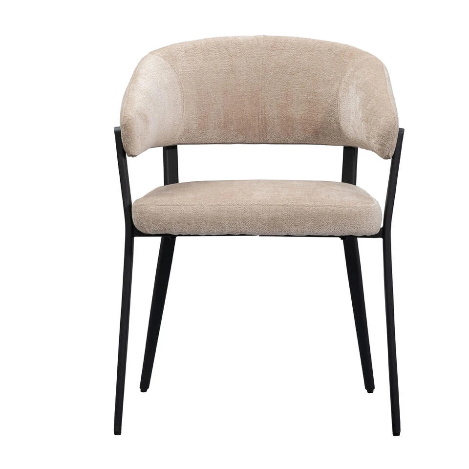 Wanneer je op zoek bent naar een moderne eetkamerstoel, dan is Eetkamerstoel Liv perfect voor jou. Met haar caramel kleurige bekleding en zwarte metalen poten past deze stoel in ieder interieur. Liv heeft ronde vormen en een open rugleuning waardoor de stoel een frisse uitstaling krijgt. De metalen poten en zachte bekleding geven de stoel een trendy look en door de comfortabele armleuningen kun je uren tafelen. Makkelijk onder te tafel te schuiven en verkijgbaar in verschillende kleuren.