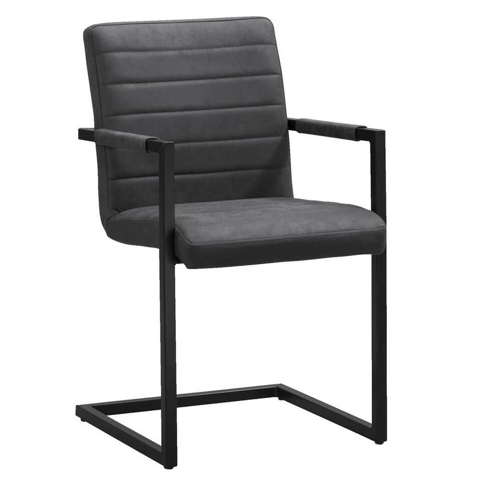 Eetkamerstoel Lizzy is bekleed met een antraciet stof die door de stiksels ook fraai oogt. Deze stoel is voorzien van comfortabele armleuningen, die ook zijn bekleed met dezelfde stof. Wil je je armen laten rusten tijdens het (na)tafelen, dan zijn stoelen met armleuning ideaal voor jou. Ook als je werkt aan je eetkamertafel is het prettig om je armen te ondersteunen. Het metalen slede onderstel zorgt voor een licht verende zitting. Extra comfortabel dus.