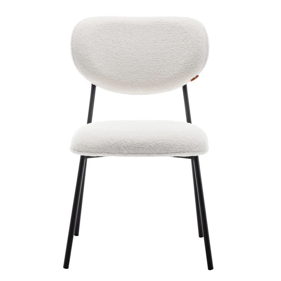 - Luxueuze eetkamerstoel Amalia met zachte teddy stof bekleding en stevige metalen poten