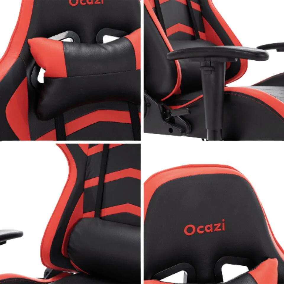 Ervaar de ultieme gamingervaring met de Texas gaming stoel van Ocazi, speciaal ontworpen om je als een professional te laten zitten. Deze stoel is verkrijgbaar in drie krachtige accentkleuren: rood, blauw en wit, waarmee je jouw persoonlijke stijl kunt laten zien. De comfortabele kuipzitting van zwart kunstleer met prachtige accentkleuren biedt eindeloos comfort, zodat je zelfs tijdens lange gamingsessies comfortabel kunt blijven zitten.