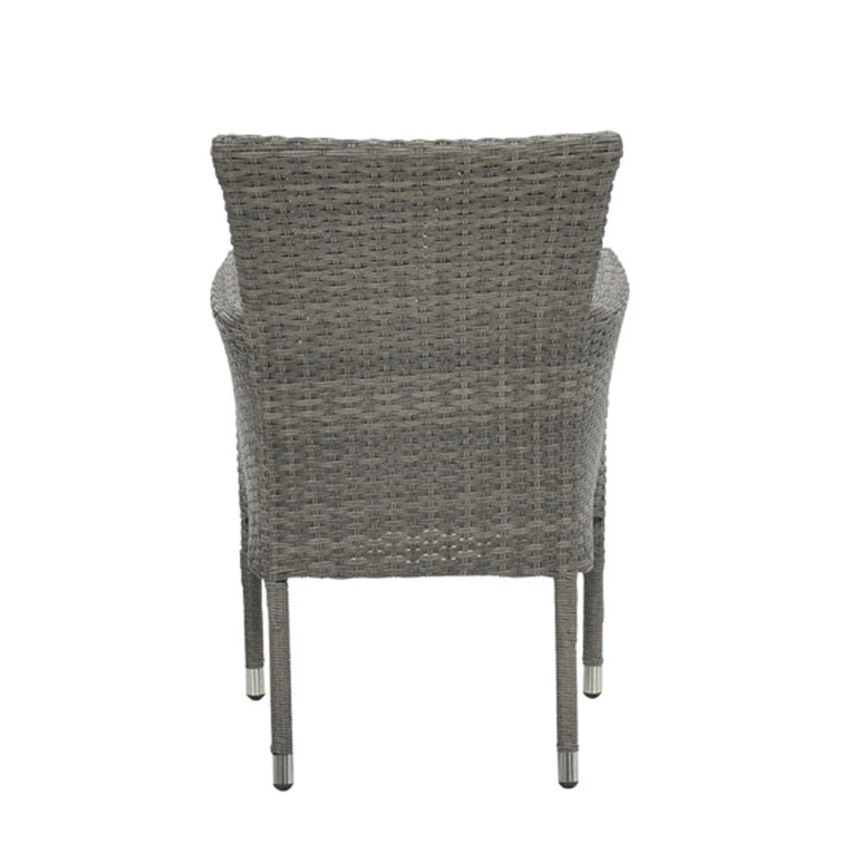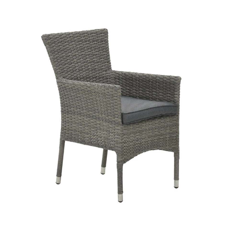 De Nicosia wicker tuinstoel heeft een stevig aluminium frame. Aluminium kan niet verroesten en is daarom het perfecte materiaal voor buitenshuis. Daarnaast is het licht in gewicht waardoor de stapelbare tuinstoel eenvoudig te verplaatsen is. Om dit frame is het wicker vlechtwerkdraad bevestigd. Wicker wordt gemaakt van kunststof en heeft weersbestendige eigenschappen. Perfect bestand tegen het Nederlandse klimaat en dus een lange levensduur. Het vlechtwerkdraad is uitgevoerd in de kleur: Organic grey. Voor extra comfort wordt de wicker tuinstoel geleverd met een zitkussen. Om ruimte te besparen wordt het kussen onder de stoel verpakt. Wanneer je de tuinstoel geleverd krijgt weet je dus waar je moet zoeken. De hoes van het kussen is afritsbaar zodat je deze met de hand uit kunt wassen. Het kussen is niet waterbestendig, maar is wel voorzien van een waterafstotende coating. Handig als er bijvoorbeeld geknoeid wordt met drinken. Je veegt het vocht er gemakkelijk vanaf. Na gebruik adviseren wij om het kussen op een droge en geventileerde plek op te bergen. Dit kan bijvoorbeeld in de schuur of in een praktische opbergbox.