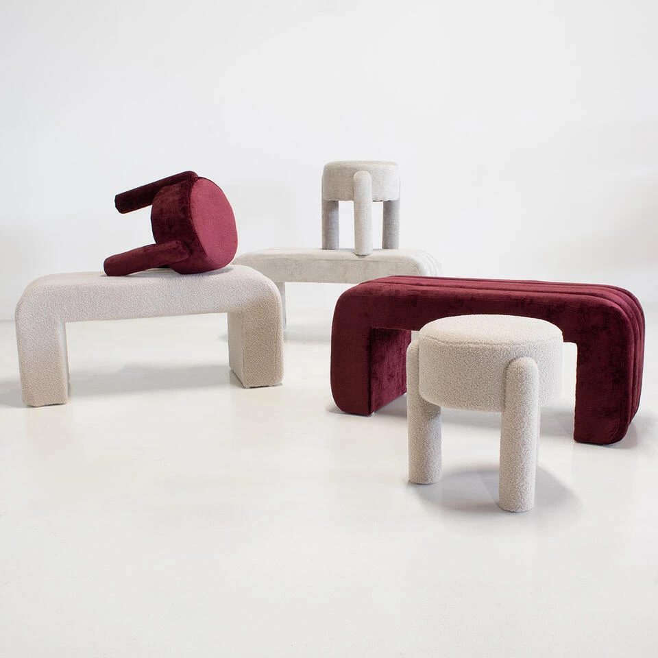 Materiaal: Het bankje is vervaardigd uit een combinatie van stof en hout. De stof zorgt voor een zachte en comfortabele zitervaring, terwijl het hout bijdraagt aan de stevigheid en duurzaamheid van het meubelstuk. Deze materialen zijn zorgvuldig geselecteerd om een lange levensduur en een tijdloze uitstraling te garanderen.