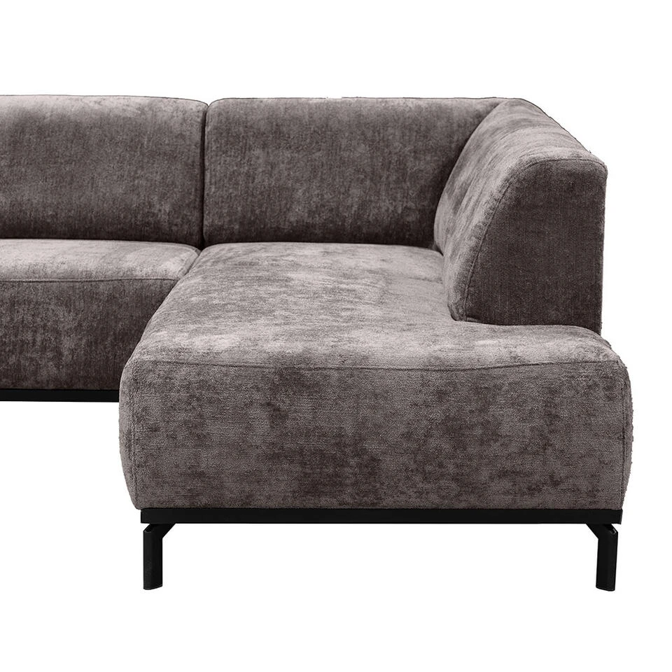 Hoekbank Lola heeft een sfeervolle en moderne uitstraling in een trendy taupekleurige stof. De bank heeft een hoek aan de rechterkant en is voorzien van slanke metalen poten. Deze ruime hoekbank is perfect voor het hele gezin. Als jij houdt van een bank met veel comfort en een moderne uitstraling, dan is deze bank een echte musthave!