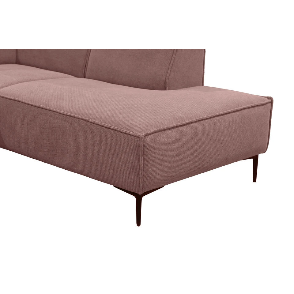 Hoekbank Romy heeft een sfeervolle en moderne uitstraling in een trendy rozekleurige stof. De bank heeft een hoek aan de rechterkant en is voorzien van slanke metalen poten. Deze ruime hoekbank is perfect voor het hele gezin. Als jij houdt van een bank met veel comfort en een moderne uitstraling, dan is deze bank een echte musthave!