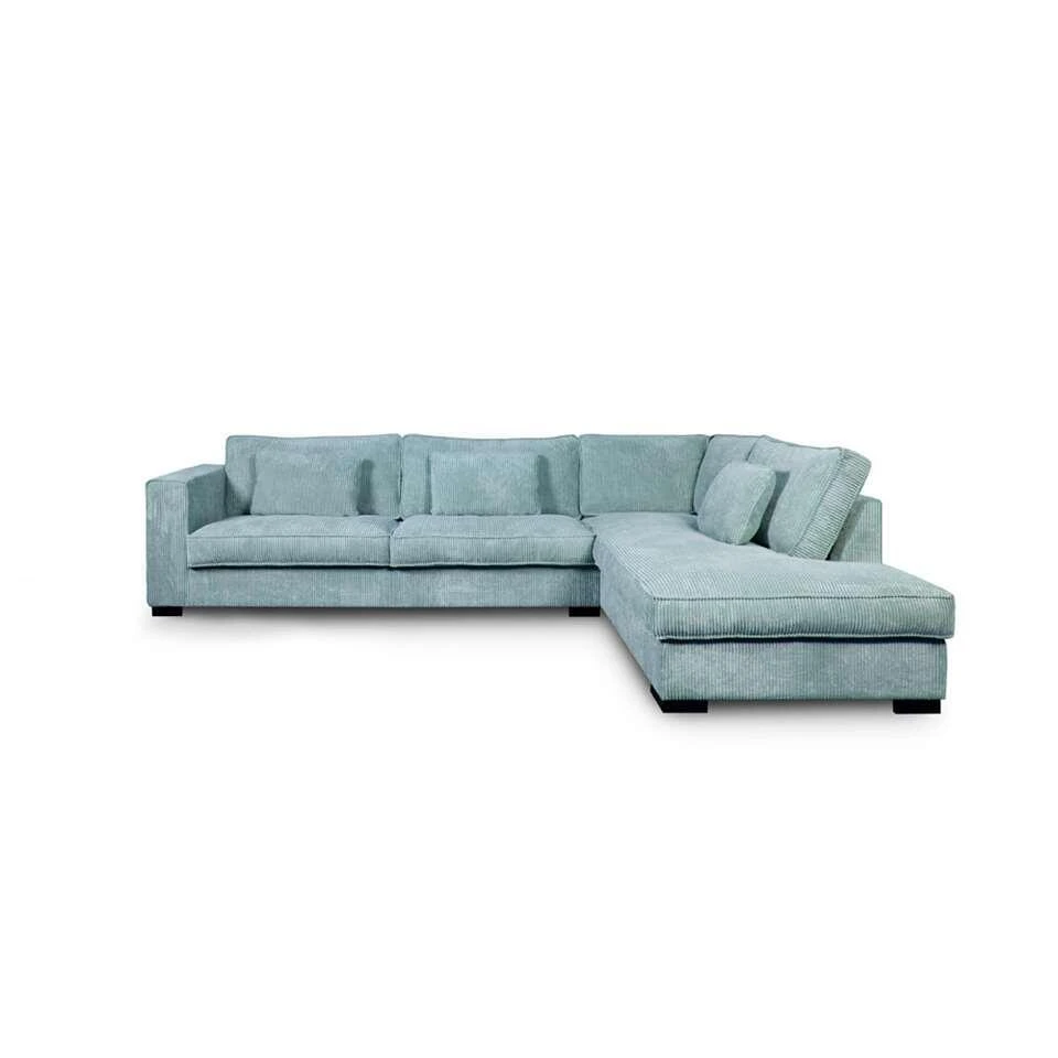Deze bank heeft een retro uitstraling door de ribcord stof bekleding. De ijsblauwe kleur geeft de bank een frisse en trendy look!