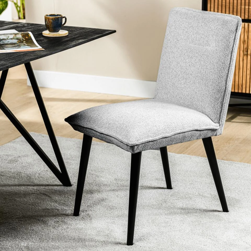 De Malo eetkamerstoel in de kleur grijs is een prachtig stuk uit de collectie van het woonmerk Vurna. De stoel heeft een elegante uitstraling die perfect past in verschillende woonstijlen. De grijze kleur van de stoel is subtiel en past uitstekend bij de zwarte metalen poten. Het zorgt voor een moderne uitstraling, waardoor de stoel gemakkelijk te combineren is met andere meubelstukken. De Malo eetkamerstoel is gemaakt van de stof Heaven, wat erg comfortabel aanvoelt en duurzaam is. De stof is niet alleen aangenaam om op te zitten, maar het zorgt ook voor een visueel aantrekkelijke uitstraling. Het doorlopende stiksel op de rugleuning en het zitvlak geeft de stoel een eigentijdse uitstraling. Het zitvlak en de rugleuning zijn perfect op elkaar afgestemd, wat zorgt voor een optimaal zitcomfort. De goede vulling van de stoel zorgt ervoor dat de stoel ook nog eens erg comfortabel is om op te zitten. Het fijne ontwerp van de stoel maakt het bovendien nog prettiger om op te zitten, waardoor het een ideale keuze is voor lange diners met vrienden en familie. De Malo eetkamerstoel past dankzij de neutrale kleuren perfect in verschillende woonstijlen. Of je nu een moderne, Scandinavische of klassieke inrichting hebt, deze stoel past er altijd bij. Het is een tijdloos en stijlvol meubelstuk dat jarenlang mee zal gaan en een waardevolle toevoeging aan je interieur zal zijn. Malo is verkrijgbaar in verschillende uitvoeringen, kijk hiervoor op onze website.