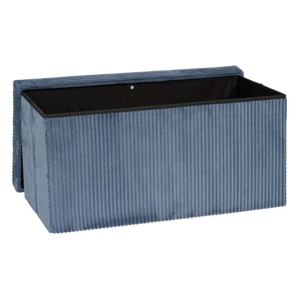 Atmosphera hocker poef Essestial Ribcord. Slim, stijlvol en opvouwbaar: deze 2 persoons hocker uit de Essestial Ribcord serie is de ideale combinatie van comfort en functionaliteit. Hij biedt een royale opbergruimte voor spullen die je liever uit het zicht houdt en is in een handomdraai op te vouwen wanneer je ‘m even niet nodig hebt. De zachte polyester bekleding en strakke vormgeving maken hem tot een subtiele blikvanger in elk interieur. Perfect voor kleine woningen, studentenkamers of als extra opberger in de hal of slaapkamer. Afmeting: ca. 76 x 38 x 38 cm. Materiaal: MDF en polyester. Zitplaats met opbergruimte.