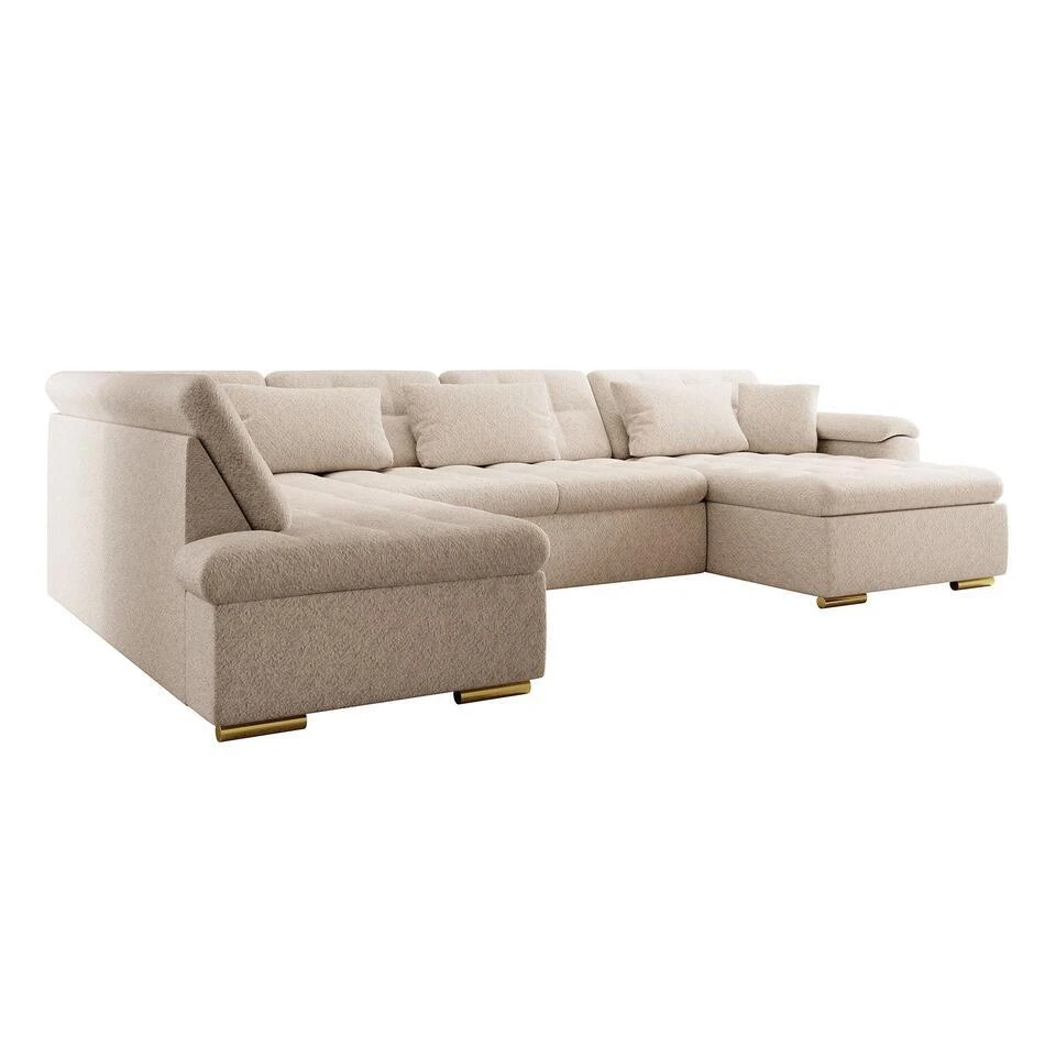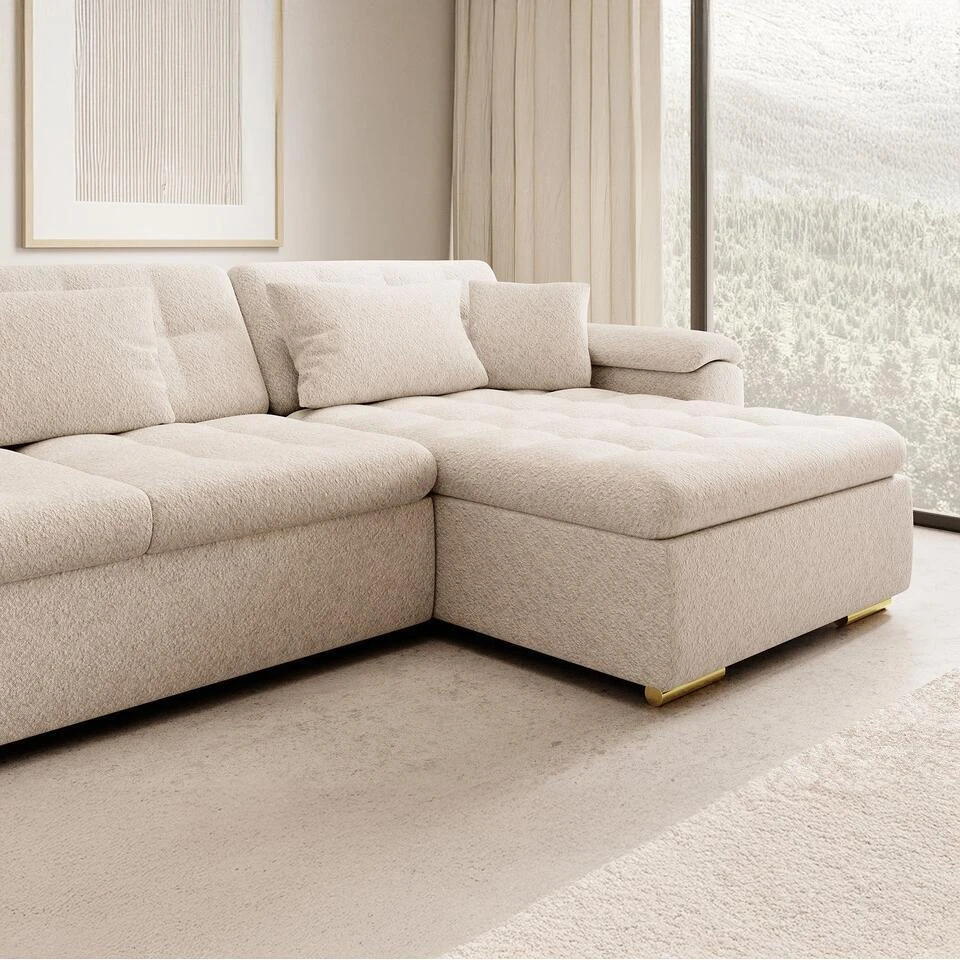 Hoekbank Nicoreta is gemaakt van teddy stof. De Nicoreta is een bank in U-vorm. Staat op lage, goudkleurige pootjes. Heeft vaste zit- en rugkussens. Inclusief bijpassende sierkussens. Het meubel wordt ongemonteerd geleverd. Je dient het dus met behulp van de bijgeleverde handleiding zelf in elkaar te zetten.