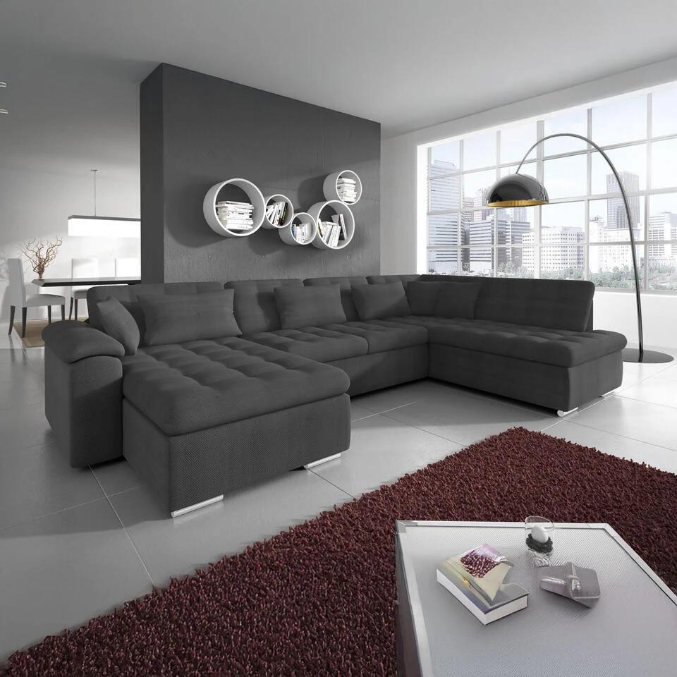 Hoekbank Nicoreta is gemaakt van stof in grijze kleur. De Nicoreta is een bank in U-vorm. Staat op lage, zilverkleurige pootjes. Heeft vaste zit- en rugkussens. Inclusief bijpassende sierkussens. Het meubel wordt ongemonteerd geleverd. Je dient het dus met behulp van de bijgeleverde handleiding zelf in elkaar te zetten.
