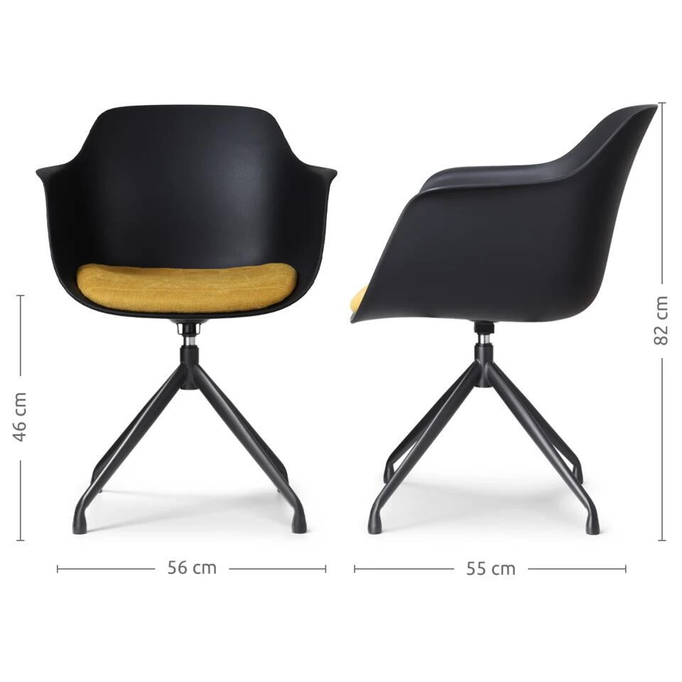 De Nola draaibare eetkamerstoel met een kunststof zitting met armleuningen is een mooie elegante stoel die als blikvanger dient rondom je eettafel.