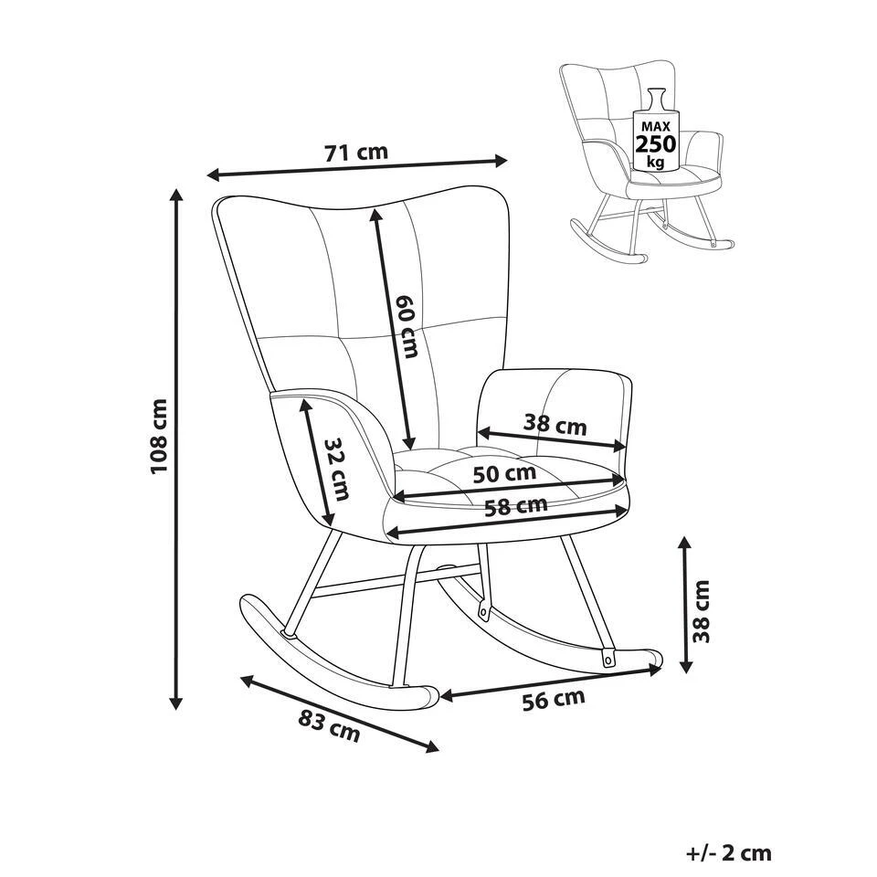 Belangrijkste eigenschappen: Schommelfunctie, Perfect gevormde armleuningen, Gezellige uitstraling, Past uitstekend in elk interieur, Hoogwaardige kwaliteit stoffering, Robuust frame