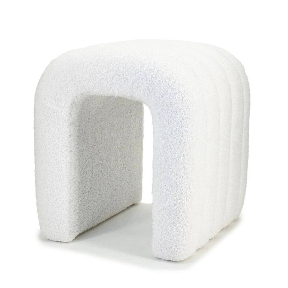 Materiaal: De poef is bekleed met hoogwaardige bouclé stof, wat zorgt voor een zachte en comfortabele zitting.
