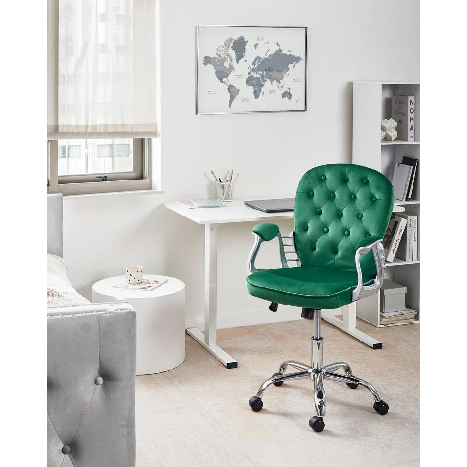 Belangrijkste eigenschappen: 360° draaibaar, Pneumatisch verstelbare zithoogte, Soepel rollende nylon wieltjes, Kantelmechanisme voor een optimale zithouding, De veiligheidsremfunctie vergrendelt wielen voor veiligheid, ontgrendelt voor mobiliteit, Tijdloos design, Zijdezacht, fluwelen stof
