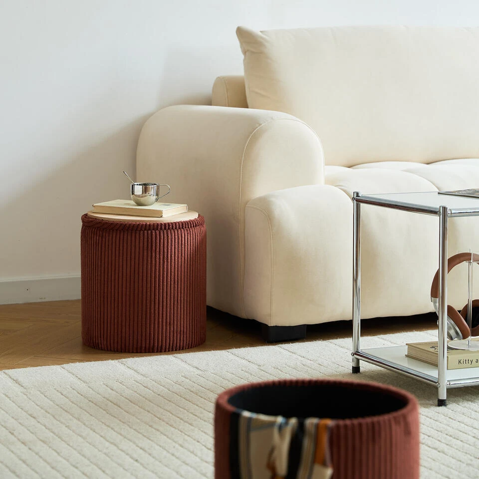 De set van 3 poefs NARVIK is het perfecte item om een vleugje Scandinavische stijl toe te voegen aan uw interieur. Ontworpen voor comfort en duurzaamheid, kunnen deze poefs elk tot 120 kg dragen. Hun witte kleur en de afwerking met lussen geven een zachte en elegante uitstraling aan uw ruimte. Gemaakt van Oeko-Tex gecertificeerde materialen, garanderen ze gemakkelijk onderhoud en respect voor het milieu. Hun omkeerbare houten blad kan ze ook omtoveren tot een bijzettafel of salontafel. Met deze set van 3 poefs kunt u genieten van optimaal comfort en een verzorgd ontwerp dat perfect past bij alle interieurstijlen.
