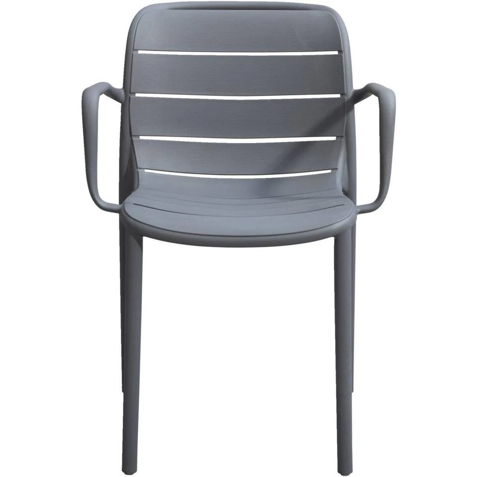 De antracietkleurige stapelstoel Nice is gemaakt van kunststof en is daardoor weersbestendig. De stoel is stapelbaar, dus je kunt de stoelen eenvoudig in elkaar stapelen als je ze een tijdje minder gebruikt. Tuinstoel Nice is verkrijgbaar in verschillende kleuren en kun je ook leuk met elkaar combineren.Â