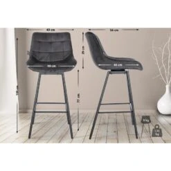 CLP Barkruk Weston Zwart Frame – Fluweel – Donkergrijs