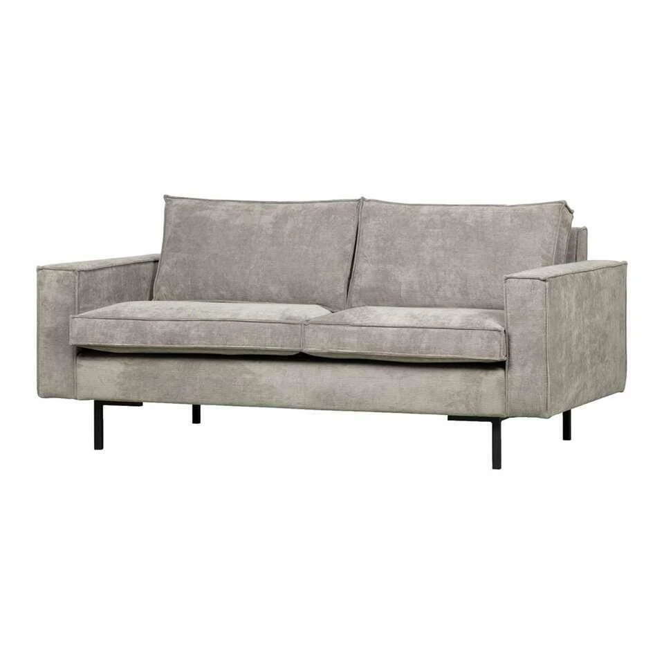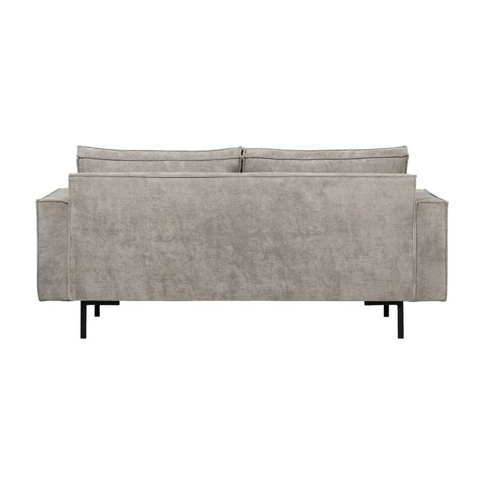 Deze bank heeft een hoogwaardige polyether vulling en is horizontaal gestoffeerd met een elegante ribstof.