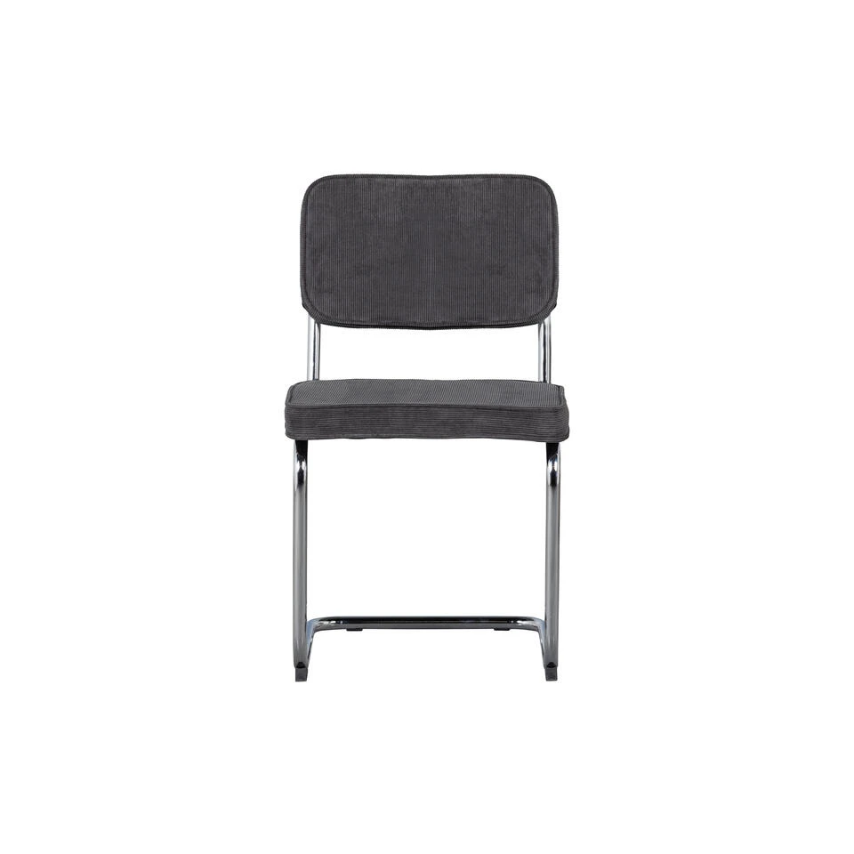 Deze comfortabele buisframe stoel is een aanwinst voor iedere eethoek. Vanwege het slanke model en de stevig zitting is deze eetkamerstoel perfect voor lange avonden aan de eettafel. De antraciet gekleurde ribstof voelt zacht aan en is opgebouwd uit 100% polyester, dit maakt de stof eenvoudig in onderhoud en geschikt voor intensief woongebruik.